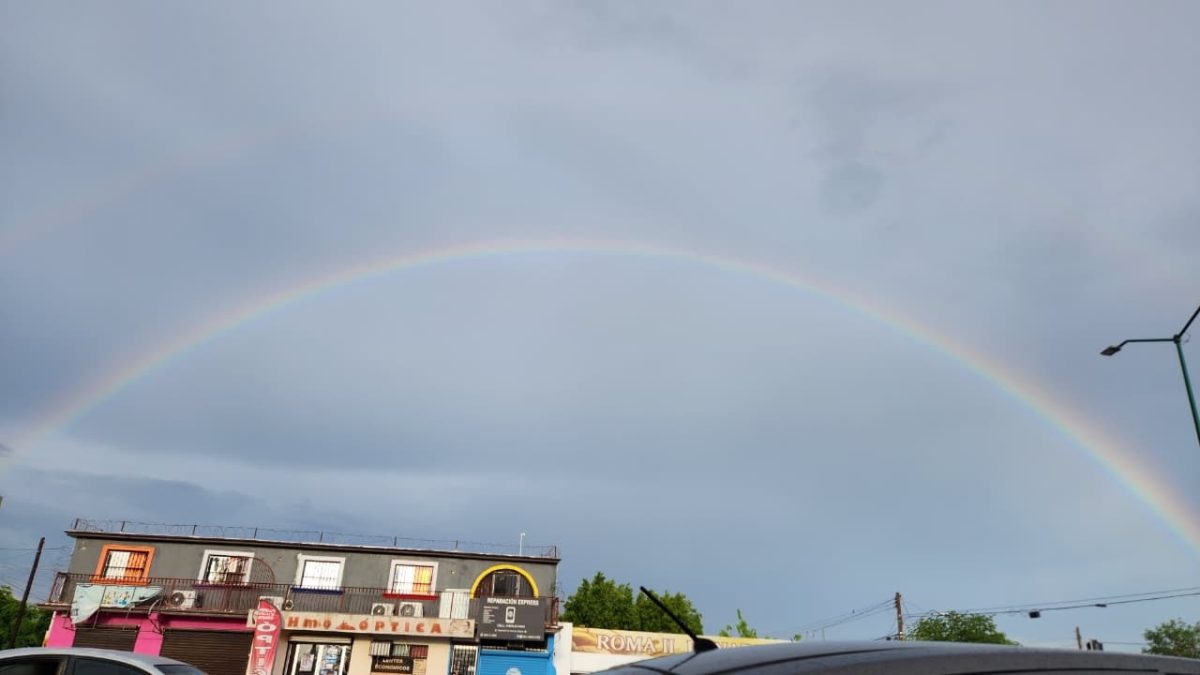 El fenómeno pudo apreciarse con claridad en varias colonias, donde vecinos salieron a capturar el momento con sus cámaras y teléfonos. Aunque normalmente este tipo de arcoíris aparece después de una lluvia copiosa, en esta ocasión se formó de manera sorpresiva sin tormenta previa y apenas con una agradable llovizna que cubrió gran parte de la ciudad, destacando entre un cielo cubierto por nubes del atardecer.