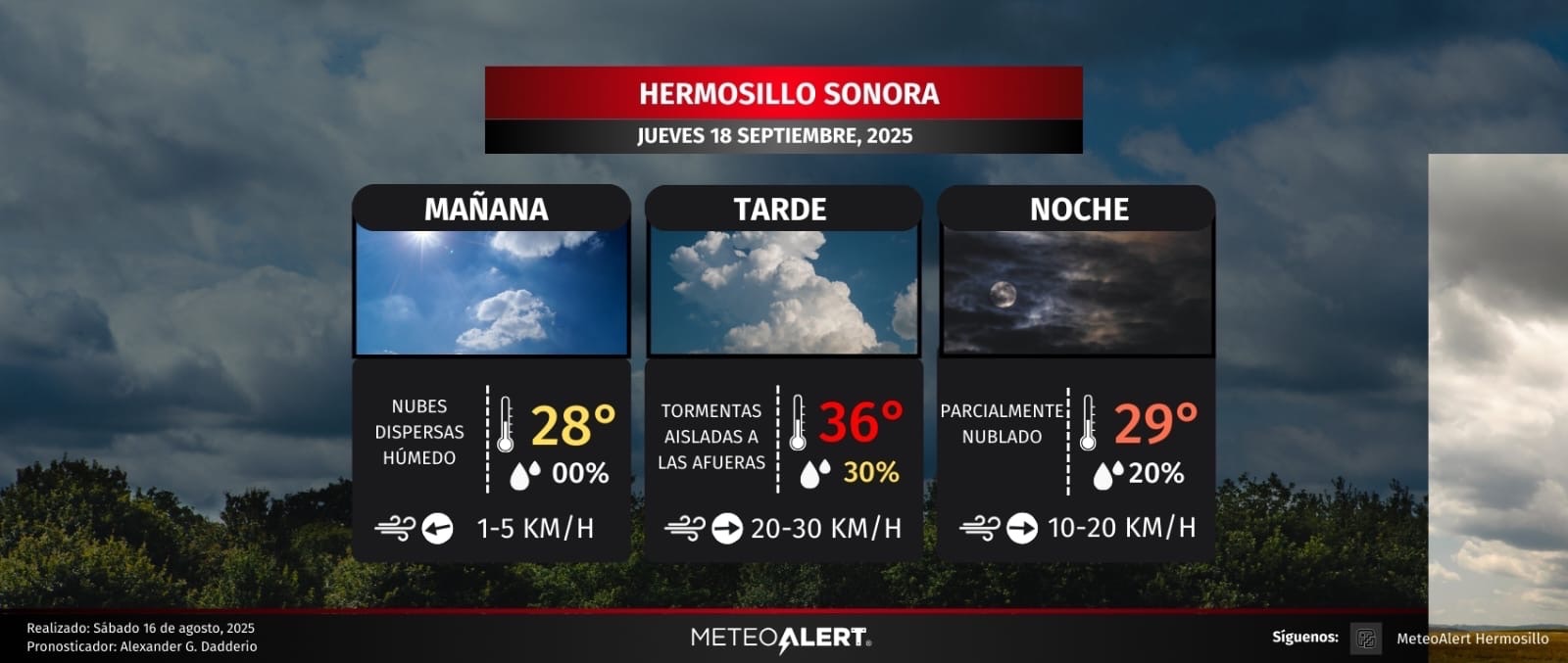 • Después de las 2pm la brisa marina estará desarrollando nubosidad vertical capaz de provocar chubascos o tormentas aisladas dispersas. La mayor probabilidad será a las afueras de Hermosillo hacia el norte, sur y poniente, quedando activo hasta las 5-6pm. A pesar de que hay baja probabilidad, mantendremos vigilancia.